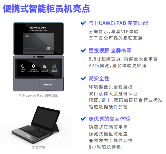 ÖÇÄÜÒÆ¶¯ÍâÍØÏµÍ³½â¾ö¼Æ»®ÓºÏÁËÒøÐеÄÒÆ¶¯»¯°ì¹«ÐèÇ󣬿ÉÀû±ãµØÔÚÒøÐдóÌᢵ͹ñ»ò¿Í»§ÏÖ³¡´òµã¿ª»§¡¢ÅÌÎÊ¡¢×ªÕË¡¢Ç©Ô¼¡¢Àí²Æ¡¢´û¿î¡¢·¢¿¨¡¢·¢U¶Ü»òÕßÃÜÂëÆ÷µÈÓªÒµ¡£ÔÚÒÆ¶¯°ì¹«Ê±£¬Í¨¹ý¹úÃܼÓÃܵÄÎÞÏßͨѶ·½·¨£¬ÓÉ»ªÎª×¨ÓÃPAD×÷ΪÖ÷¿ØÅþÁ¬²úÆ·ÍâÉ裬±ã¿ÉÒÔ¼òÆÓ¿ì½ÝµØ¾ÙÐÐÓªÒµ´òµã£¬ÔÚÎªÒøÐÐÌáÉýרҵ²ã´ÎµÄͬʱ£¬Îª¿Í»§´øÀ´Çå¾²ºÍ±ã½ÝµÄÌåÑé¡£