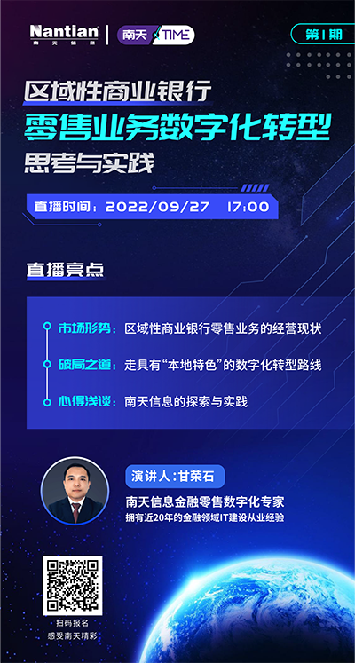 首期节目,腾博tengbo9885官网信息金融零售数字化专家甘荣石将为各人带来《区域性商业银行零售营业数字化转型的思索与实践》,重点分享关于商业银行零售营业战略转型与落地的心得体会。更多精彩,敬请期待!