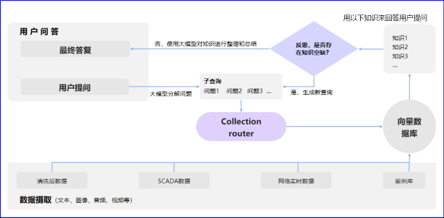 经由治理后获得的精炼文本,通过电力专用Embedding模子,将洗濯后的文档转化为高维语义向量,计划深度融合知识引擎的混淆检索系统,具备自主决议能力,能够对RAG流程中的检索、增强、天生阶段举行动态优化,支持多办法推理与实时交互。