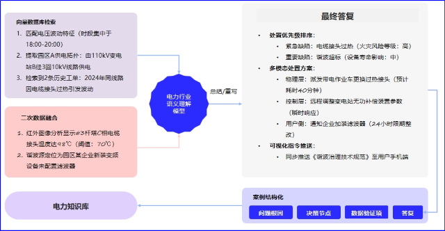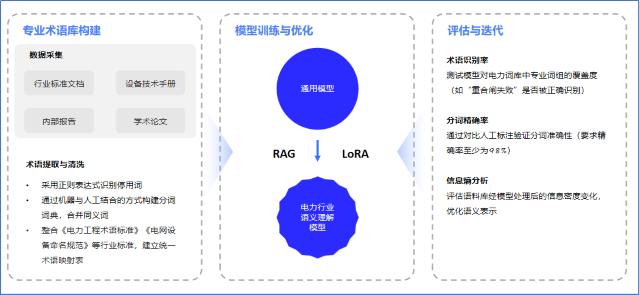 基于对电力行业手艺标准文档、装备操作手册及学术研究文献的深度剖析,形成电力行业标准化术语库,并基于RAG、LoRA训练框架等手艺,打造电力行业专用语义明确模子,显著提升大模子对电力专业知识的精准明确能力。