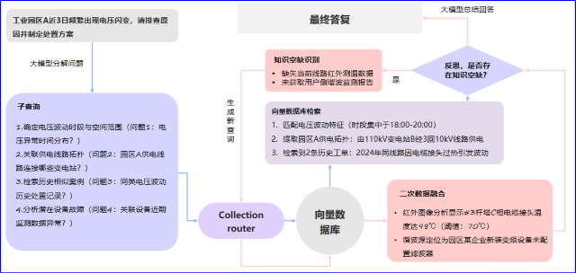 在该案例中,大模子首先将用户需求拆解为四个焦点维度:目今故障征象、关联系统状态、历史相似案例及潜在危害预判。依托向量数据库完成起源数据检索后,系统通过自检机制对知识完整性举行验证。当发明信息图谱保存局部缺失时,模子将自主提倡多轮定向检索,通过动态融合新增数据与既有信息,最终形成完整解决计划。整个剖析历程中的故障溯源、决议依据、数据验证项及解决计划,将被结构化存储为智能案例,沉淀至企业案例库,为后续同类问题的处置惩罚提供参考。