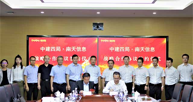 9月8日,腾博tengbo9885官网信息与中国修建第四工程局有限公司签署战略合作协议。双方将充分验展各自的专业、资源优势,在工程建设、资源运作等相关领域内建设恒久战略合作伙伴关系 ;在海内各省市的智慧金融、智慧都会、智慧交通、智慧教育、智慧医疗、工业园区数字化、新型城镇化和社区数字化、新基建等类型的投资与建设项目中开展深度合作。